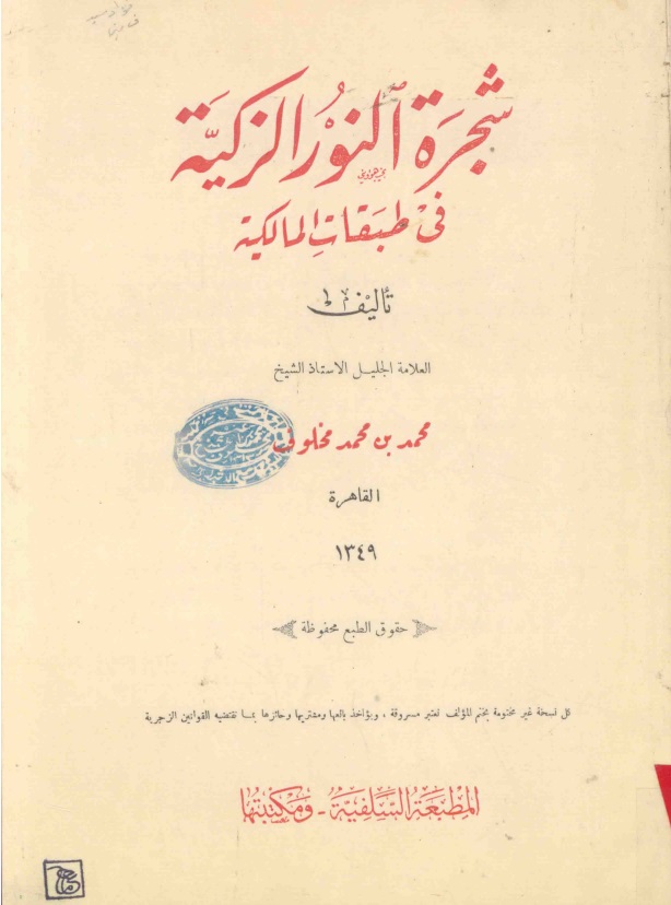 شجرة النور الزكية في طبقات المالكية لمحمد مخلوف