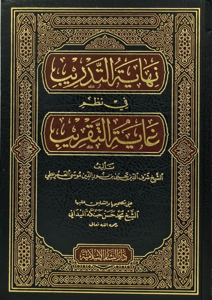 توضيح كتاب "نهاية التدريب في نظم غاية التقريب" هو منظومة شعرية فقهية من بحر الرجز، نظمها الشيخ شرف الدين يحيى العمريطي (المتوفى بعد 981 هـ)، وتعد نظماً لكتاب "غاية الاختصار" (المعروف بمتن أبي شجاع) في الفقه الشافعي. يهدف الكتاب إلى تسهيل حفظ أحكام الفقه الشافعي من عبادات ومعاملات، ويبلغ عدد أبياته أكثر من 1200 بيت. |